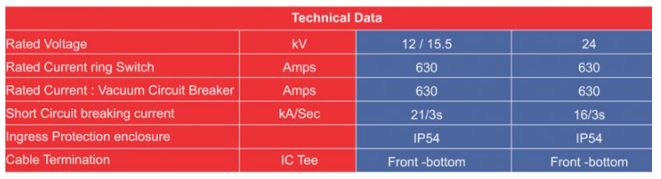 - Up to 24 kV and 630 A rangs