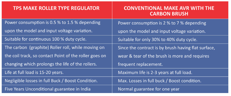 Comparsion Between TPS make and conventional make automatic voltage regulator